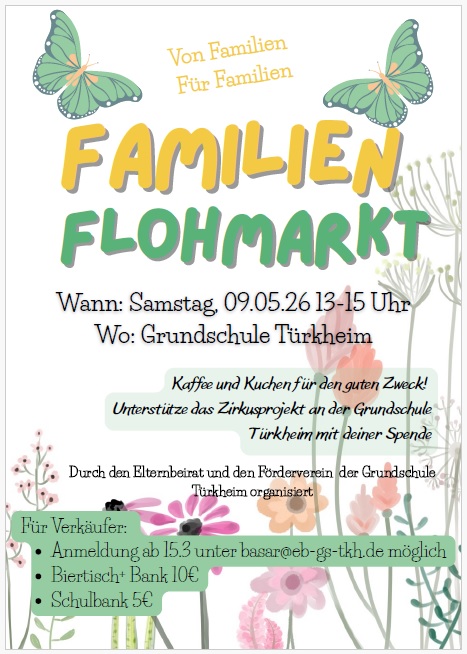 Der Elternbeirat und Förderverein der Grundschule Türkheim veranstaltet einen Kinderflohmarkt zugunsten unserer Grundschulkinder.